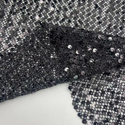 Tissu de broderie classique en maille de paillettes noires 190GSM respirant pour les robes de fête